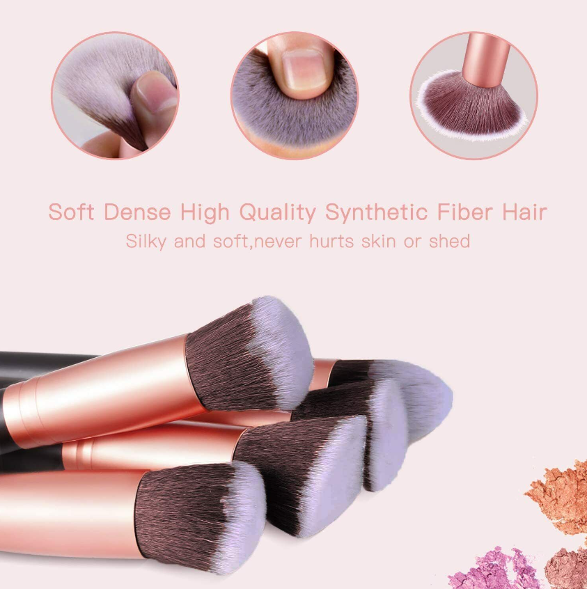 - PREMIUM SYNTHETIC MAKEUP BRUSHES: Made with soft and dense synthetic fibers to provide a high definition finish with liquid, powders or cream foundation without any absorption of product and no shedding