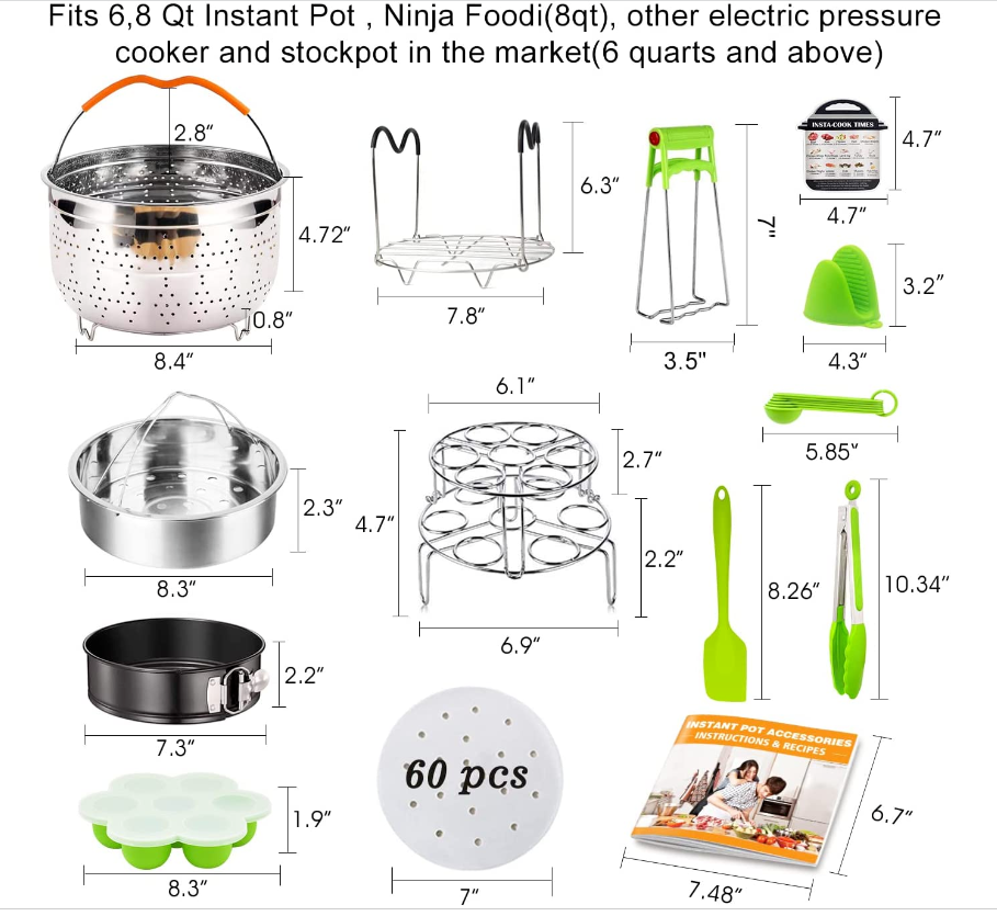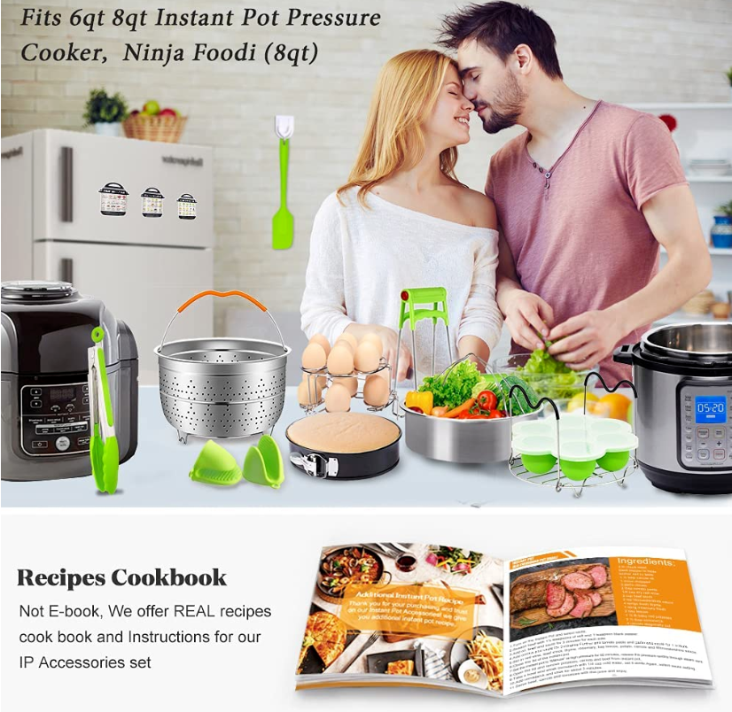 MLCINI 20Pcs Accessories for 6 quart 8 quart Instant Pot, Ninja Foodi 8quart. - This Kits is a complete set of accessories you will need to make the maximum out of your wonderful little kitchen appliance. You will no longer have to wonder around thinking what new dishes to cook using your 6qt 8qt instant pot/pressure cooker and how!