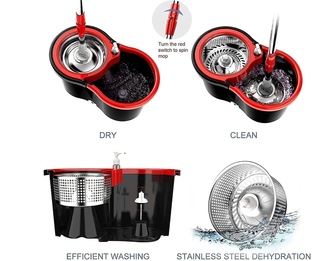 • High quality and upgraded: Our 360-degree mop with bucket is constructed from top-notch stainless steel and polymer. It's rustproof and durable. The swivel mop head is capable of reaching even the smallest corners with ease. An attached carry handle makes it simple to move around.