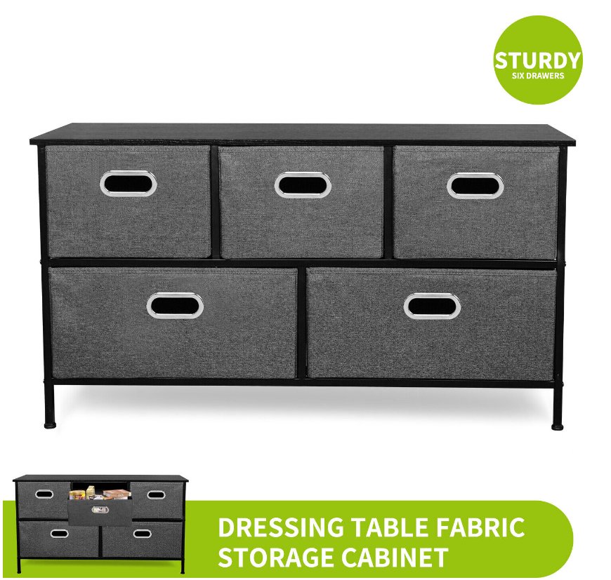 5 Fabric Drawers Storage Cube Bins Dresser Organizer Cabinet Bedroom Living Room