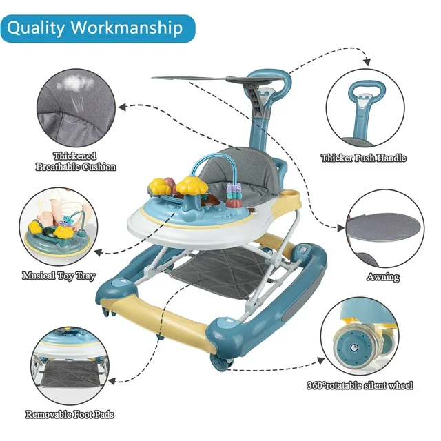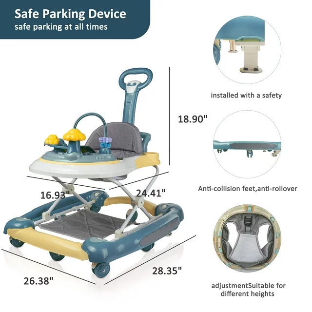 Multiple Baby Caring Modes: Designed to be foldable with detachable game plate, this walker can be also regarded as a dining car to take care of your baby and helps to learn eat independently. It is of smooth chassis and appropriate distance that will not hurt baby's heel or toe.