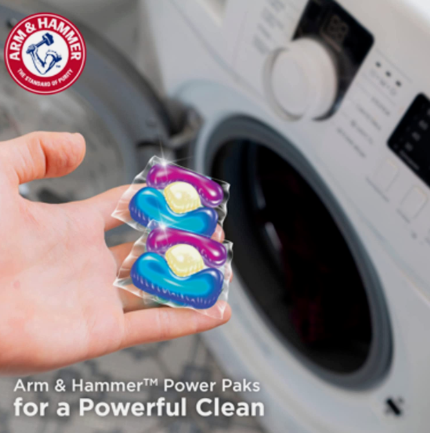 ARM & HAMMER™ Plus OxiClean™ with Odor Blasters 5-in-1 Power Paks offer 5 powerful cleaning benefits in 1: odor elimination, deep cleaning, whitening whites, brightening colors, with a powerful fresh scent booster. Odor Blasters is specially formulated to eliminate tough odors like body odor, sweat and musty towels by attacking them at their core, leaving clothes clean and smelling great with a long-lasting Fresh Burst scent. Get effective cleaning power with ARM & HAMMER™ Plus OxiClean™ with Odor Blasters 5-in-1 Power Paks. Our powerful formula is designed to work in cold and hot water as well as all machines including high efficiency (HE). Drop one in today! Tough times call for value you can trust. When you’re feeling the price pinch, Give It the Hammer.