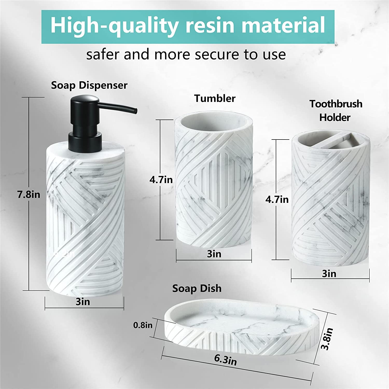 Bathroom Accessories Set 4 Pcs Marble Look Resin Vanity Counter Countertop Acces