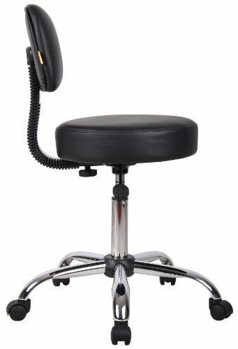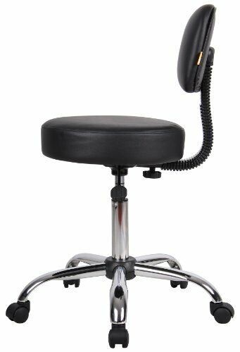 Boss Office Products Be Well Medical Spa Stool with Back in Black