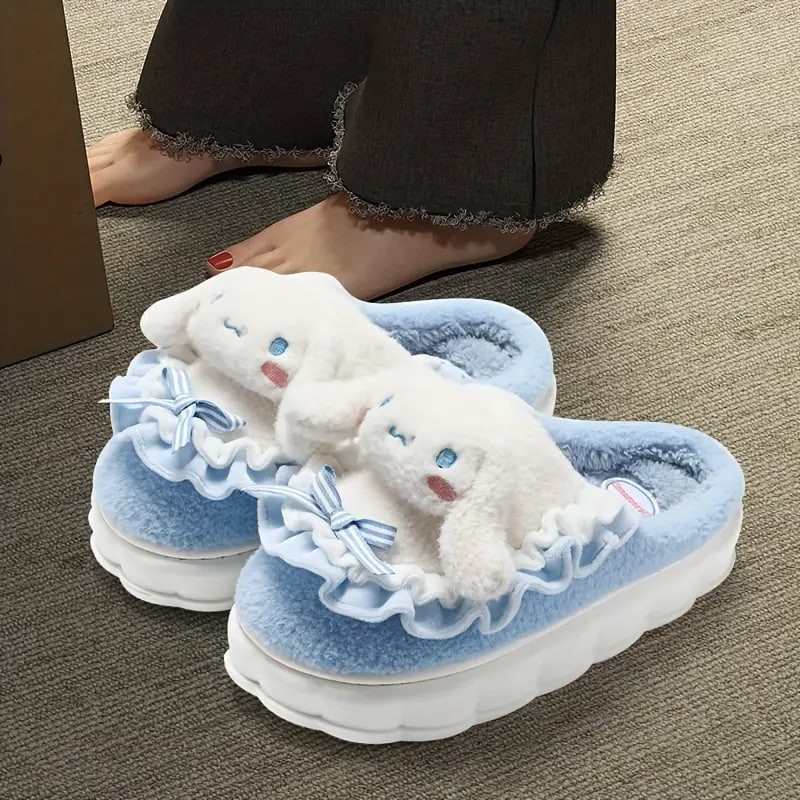 Cute Cartoon Sanrio Kulomi Novelty Slippers, Hellokitty & Melody Kawaii Non-slip Soft Fuzzy Home Slippers, Plush Cozy Shoes