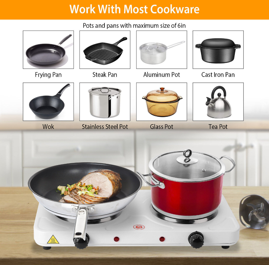 Overview:Is your cooking space compromised? Our Portable Double Hot Plate can save your space and give you mighty 2000W capacity to ensure maximum heat for quick heating with 5 temperature gears. Compact size allows it to be used in dorms, offices, or even carry for travel. Perfect for boiling water, reheating sauces, making soups to meet your daily needs!