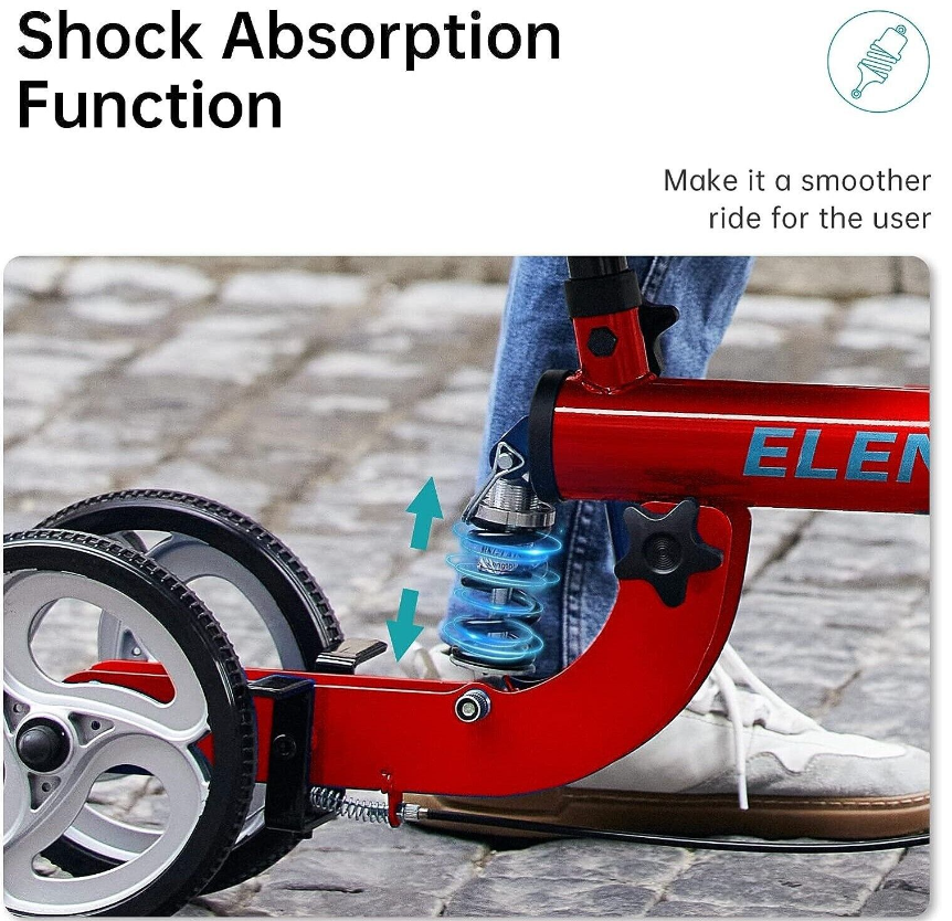 -Shock absorption function for a smoother ride; braking system for quick stopping.