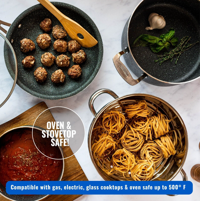 • EFFORTLESS CLEANUP, DISHWASHER SAFE: Spend less time with cleanup! After all the cooking and prepping is done, place cookware in the dishwasher for quick and easy cleanup.