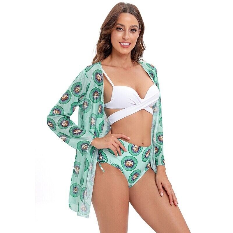 High Waist 3 Piece Bikini Set With Cover Up 2022 Women Swimsuit Print Long...