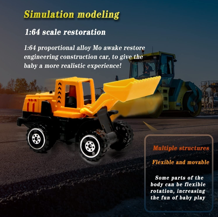 Toddler trucks is great for kids playing Engineering Construction truck or racing games, conductive to hand-eye coordination and the development of early preschool education, improving kid's practical ability through the sense of touch, It is very suitable for parent-child education and cultivate children's imagination and creativity.