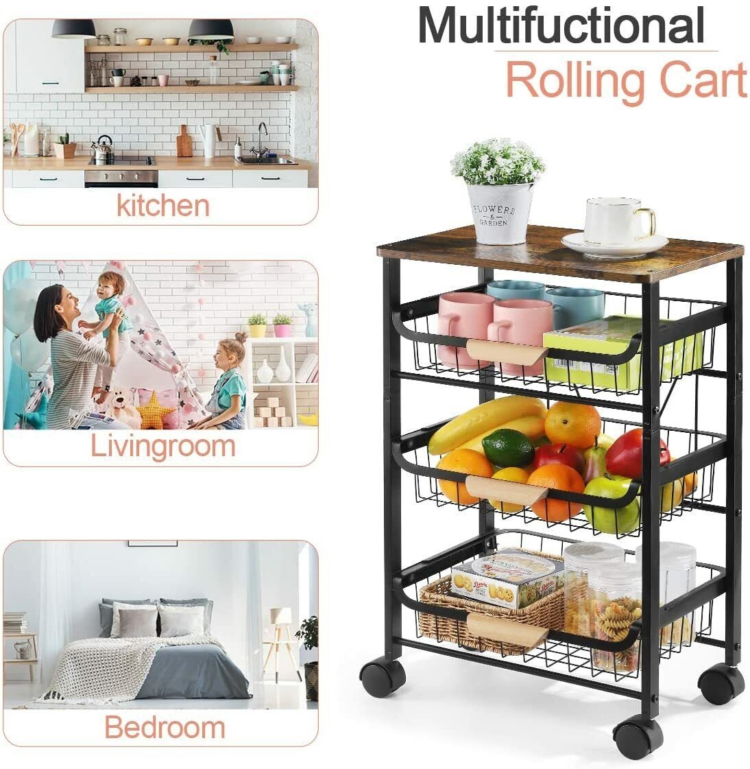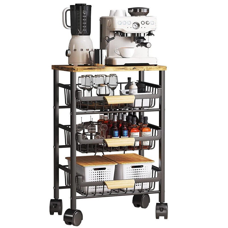 Kitchen Cart with Storage &Wheels 4 Tier Rolling Utility Cart Metal Pantry Rack