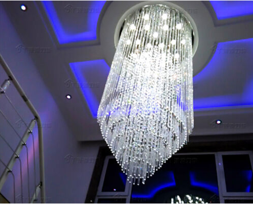 LED Crystal chandelier villa living room stair pendant lamp hotel lobby lighting