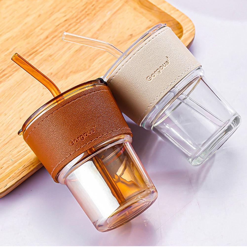 Lid And Straw Transparent Bamboo Cup Milk Coffee Mug Tea Cup Stripe Glass Cup G7