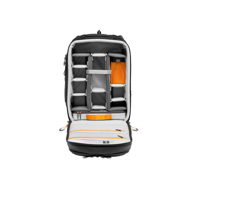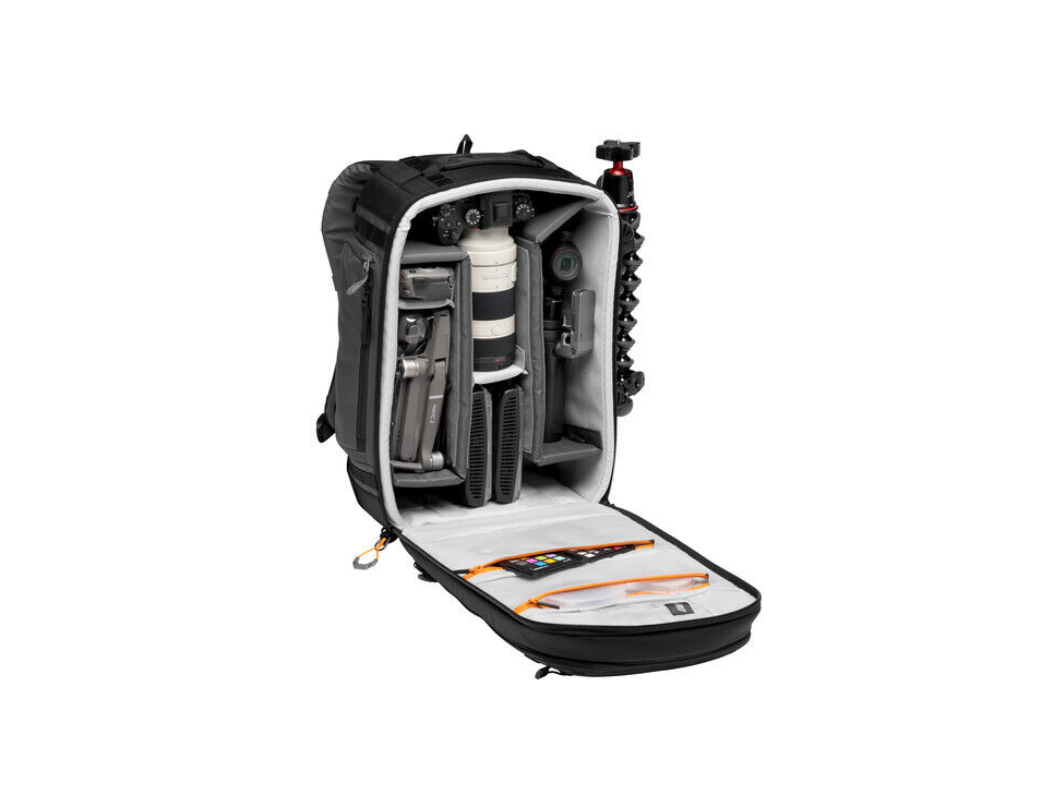 • Alternatively, main compartment can be configured for a DSLR or mirrorless camera with a 70-200mm f/2.8 lens, as well as a folding drone kit