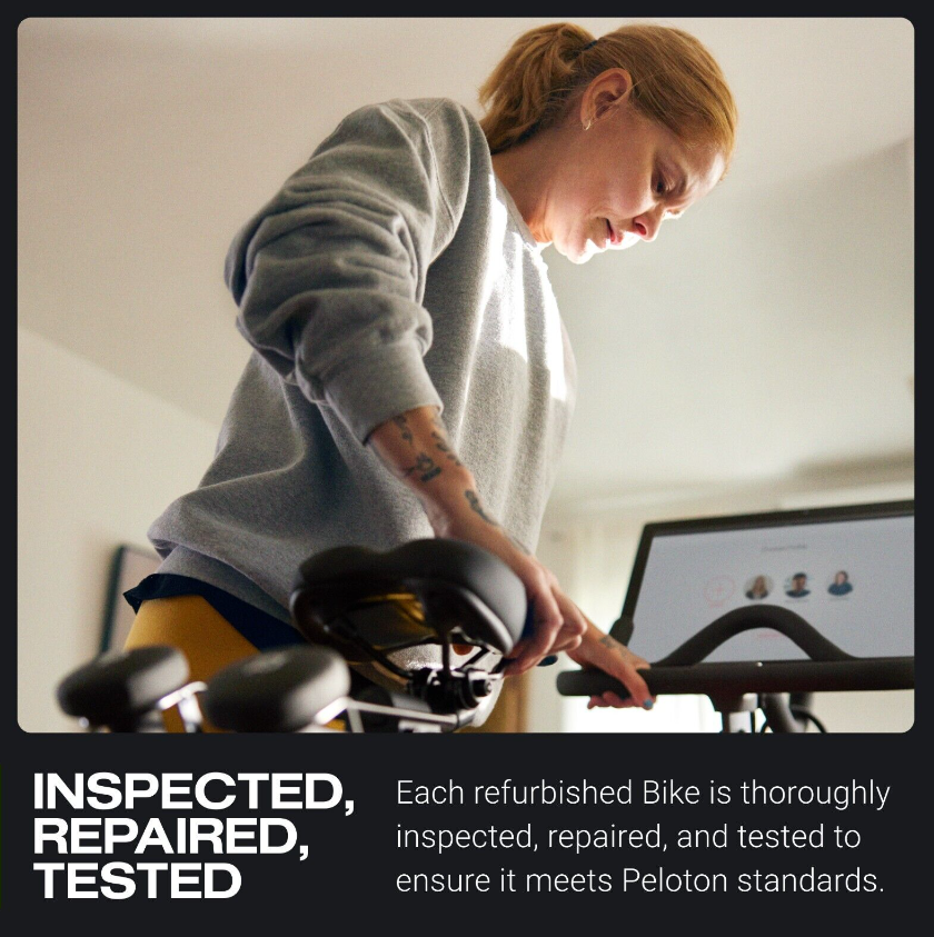 Small-space friendly - Peloton Bike has a compact, 4' x 2' footprint, and an adjustable seat, handlebar, and screen, which tilts to accommodate different heights. This stationary bike fits comfortably in your home whether you're low on square footage or working around furniture.