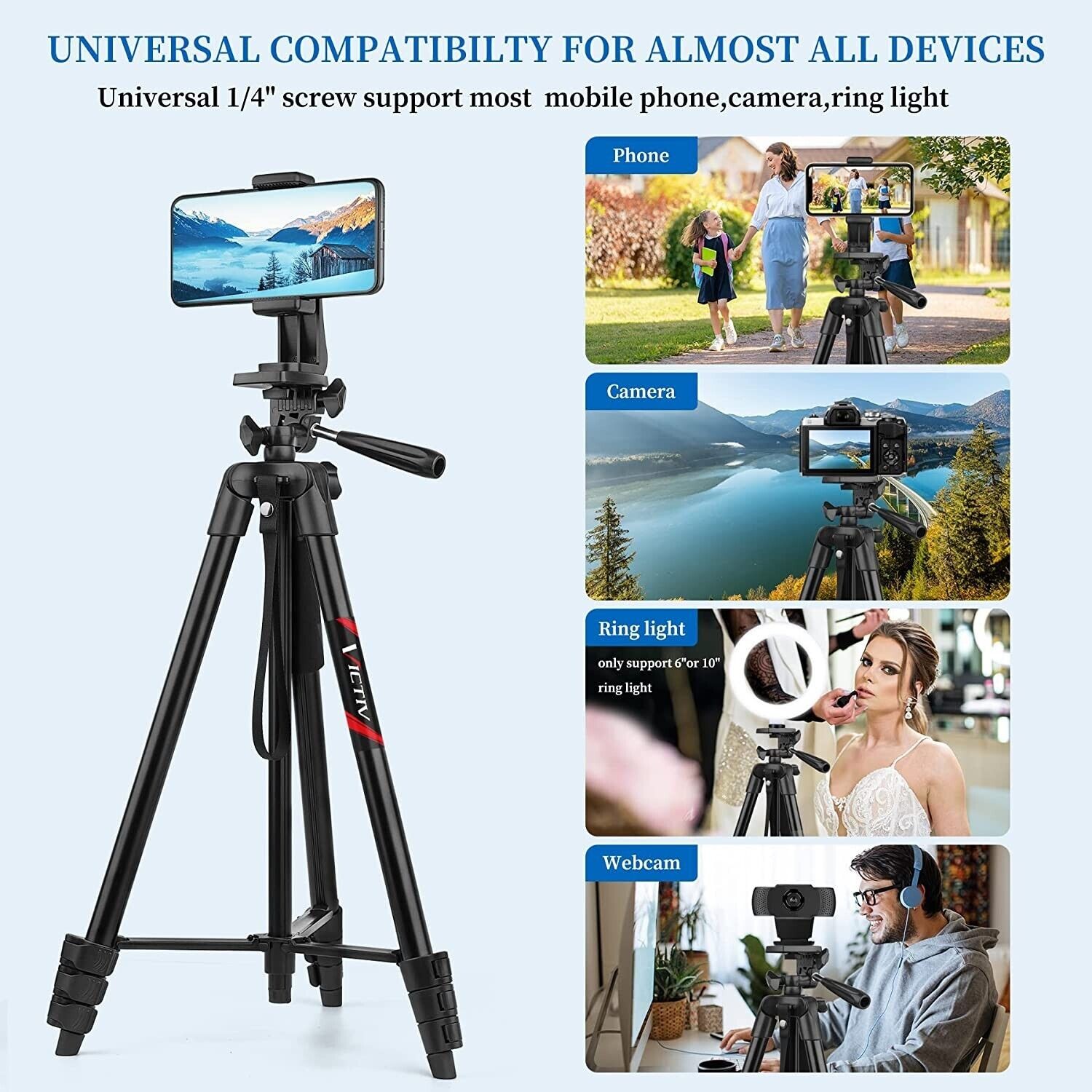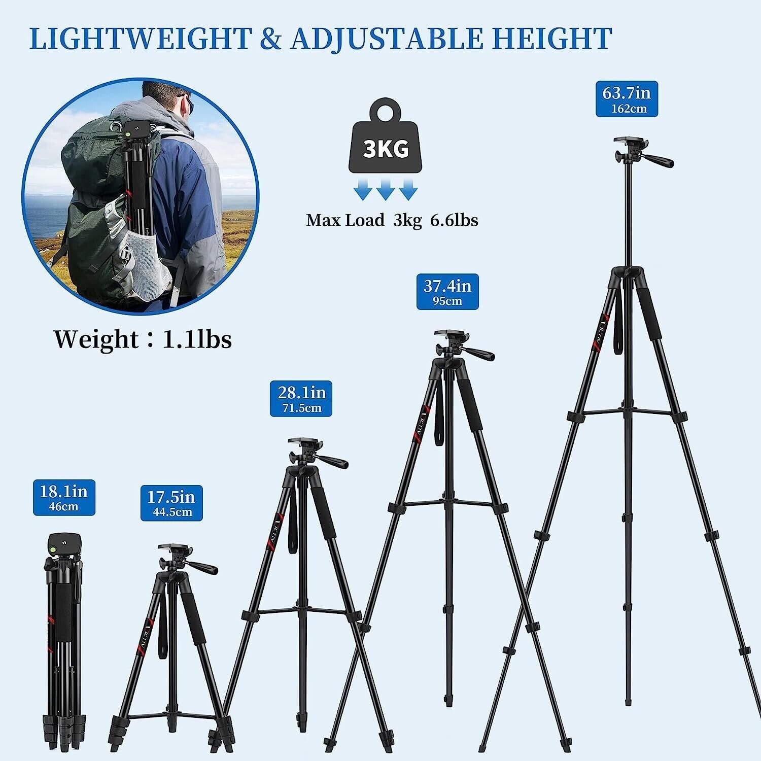 Professional Camera Tripod Stand + Phone Holder For Smartphone Samsung iPhone