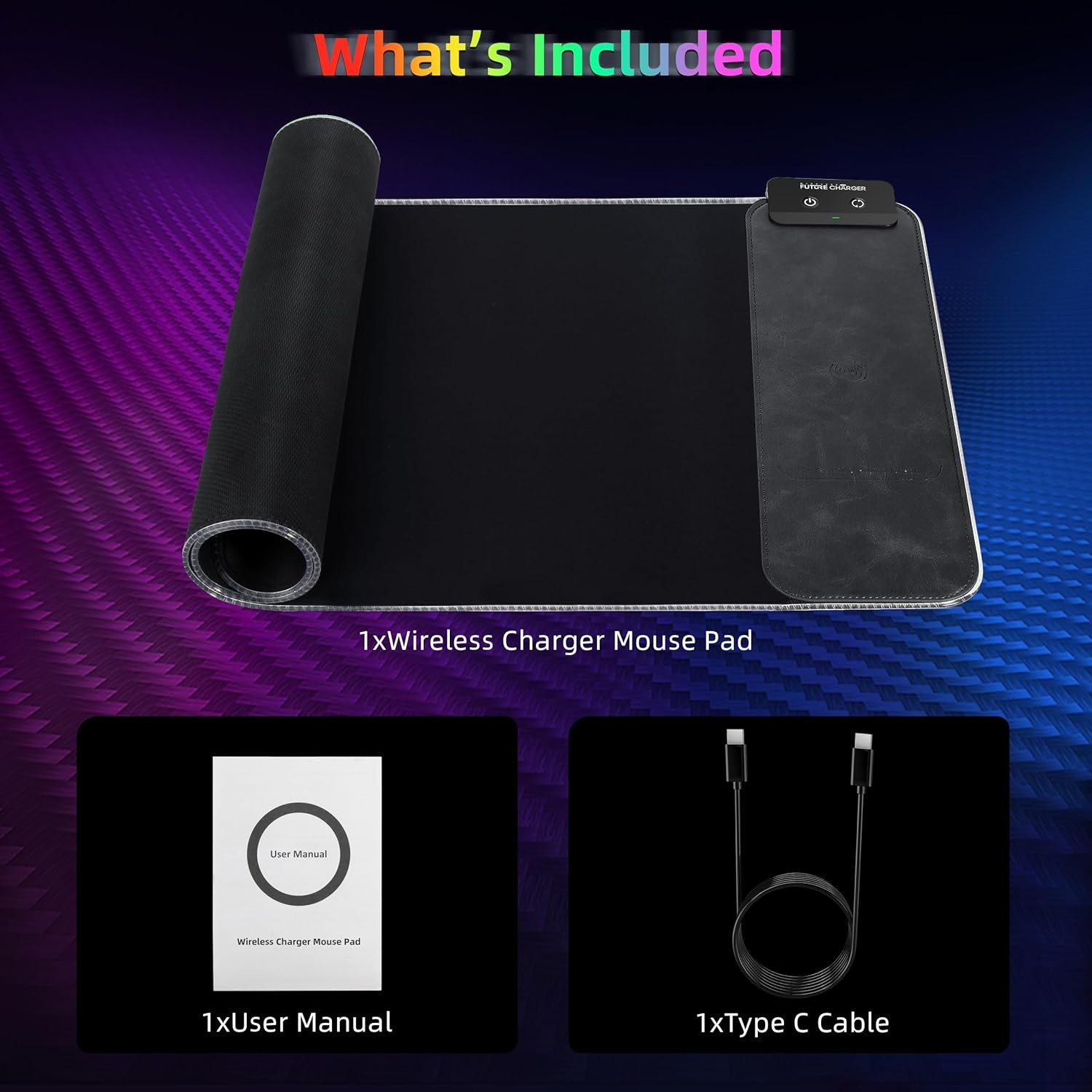 【9 Modes RGB Light Modes】: The RGB mouse pad's size is XXL and features 7 static light modes and 2 dynamic light modes; you can choose your favorite color according to your needs. One button control light modes. The colorful lights provide the visuals of vibrant colors and stunning effects. It's the best wireless charging mouse pad and desk mat for your desktop. A must-device for RGB mouse pad fans. Perfect for your gaming or working.