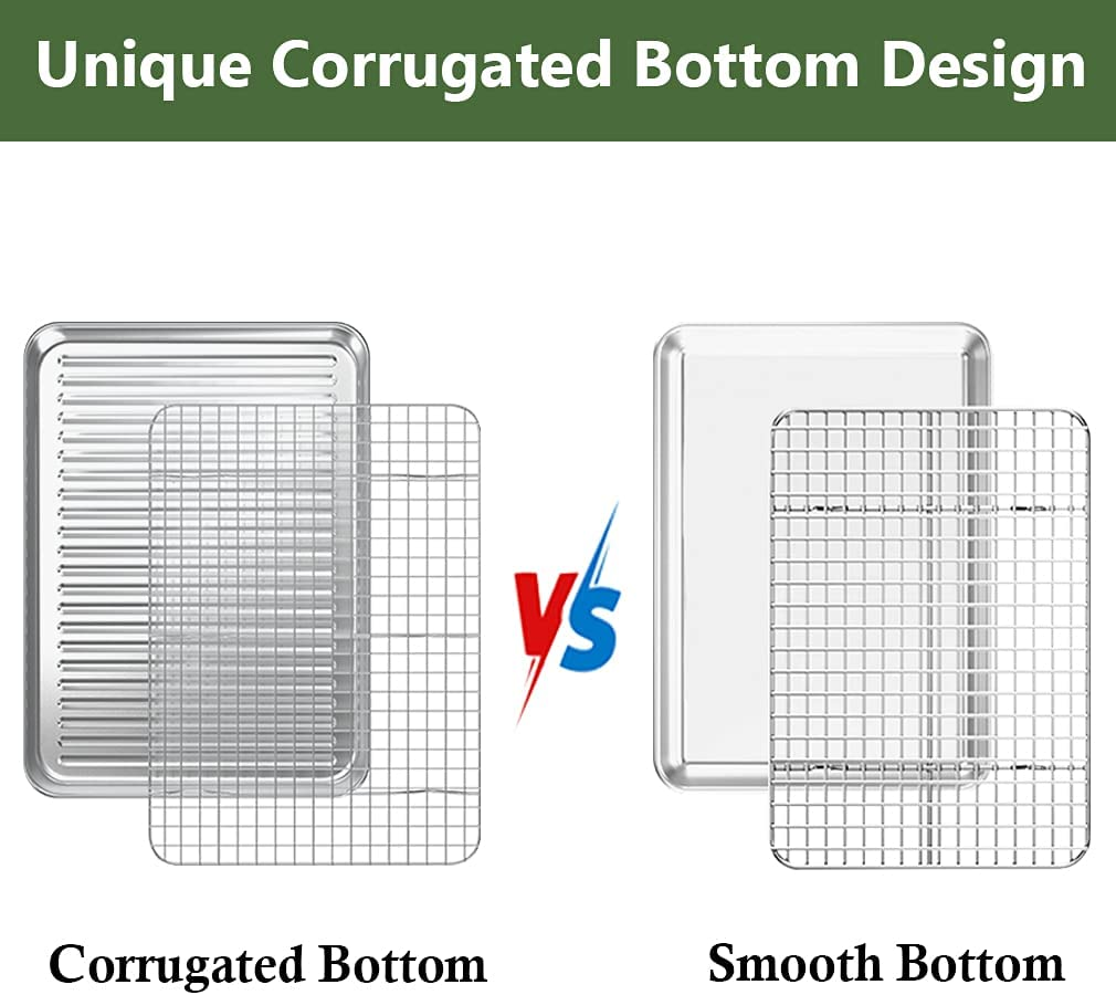 ROTTAY Quarter Baking Sheet Pan with Wire Rack Set [2 Pans + 2 Racks], Stainless