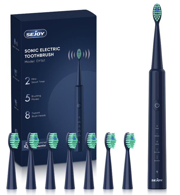 SEJOY Sonic Electric Toothbrush USB Rechargeable W/ 8 Duponts Brush Heads 5Modes