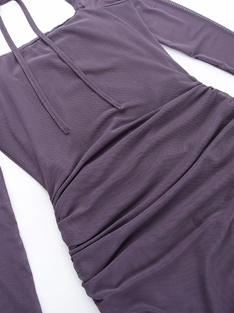 Chain Linked Cut Out Dress, Sexy Halter Neck Bodycon Club Dress, Women's Clothing
