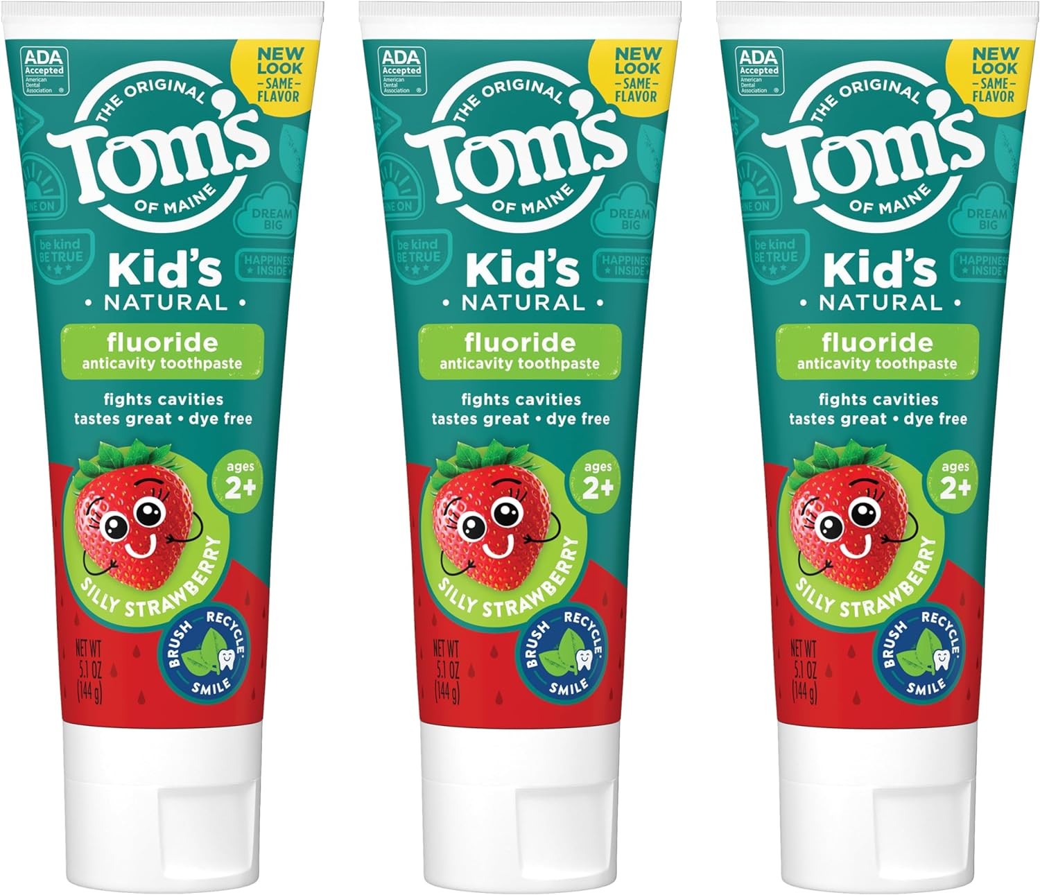 Tom's of Maine ADA Approved Fluoride Children's Toothpaste, Natural Toothpaste, Dye Free, No Artificial Preservatives, Silly Strawberry, 5.1 oz. 3-Pack (Packaging May Vary)