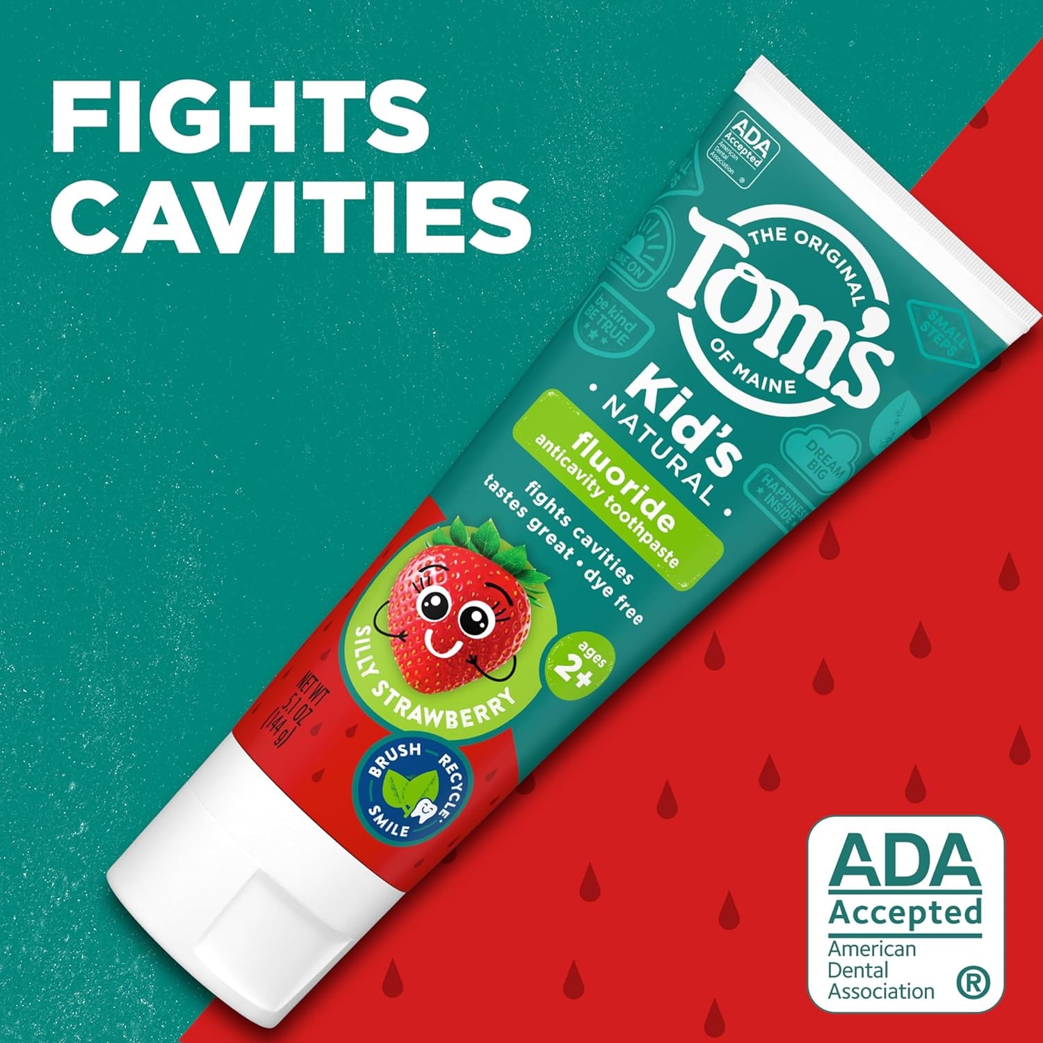 • WHAT YOU'LL GET: Three 5.1-ounce tubes of Tom's of Maine Kids Fluoride Toothpaste in Silly Strawberry Flavor