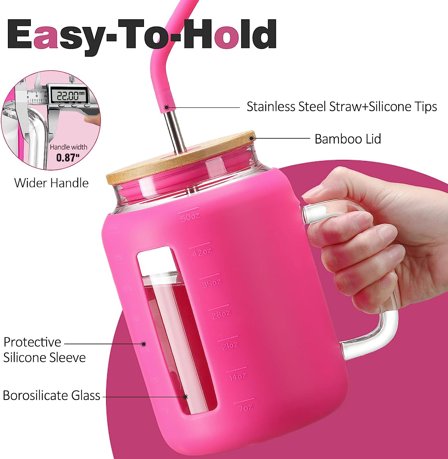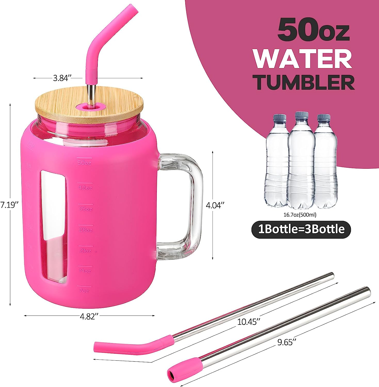 Tumbler with Lid and Straw 50 Oz Mug Tumbler with Handle Giant Glass ...