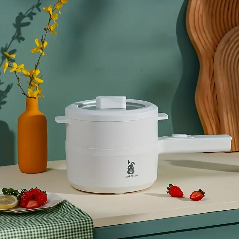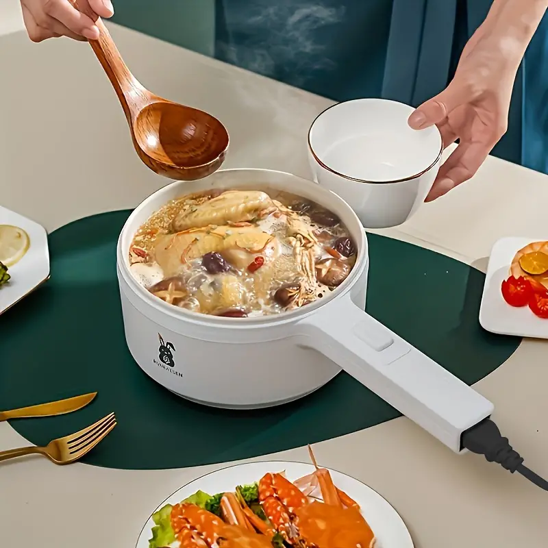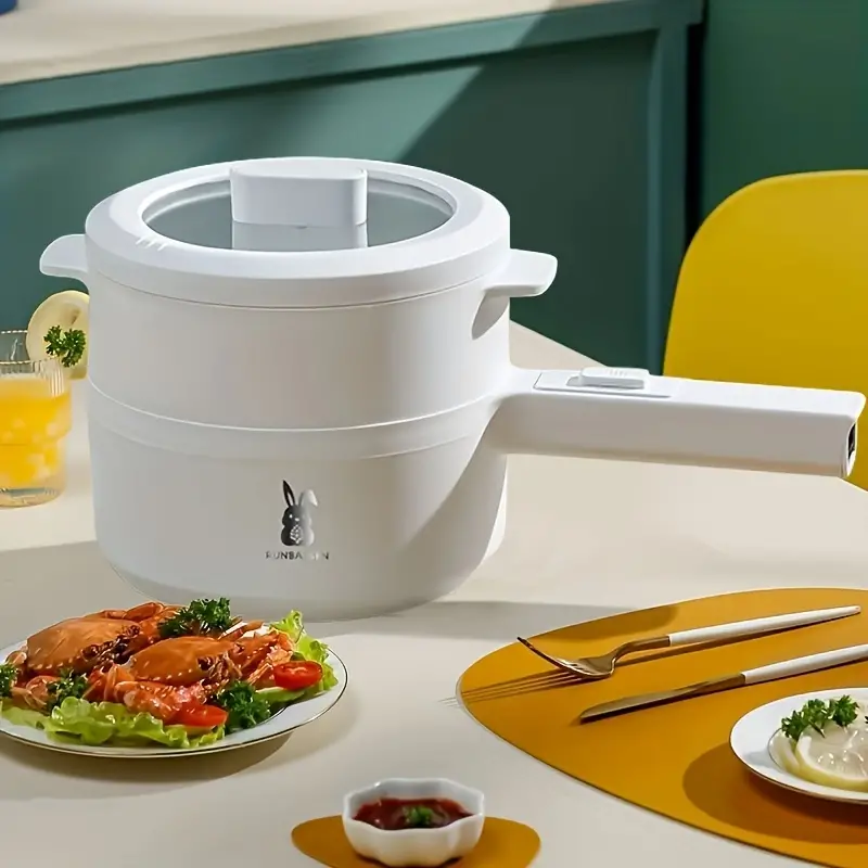 US Plug 2L Electric Cooker, Long Handle Cooker With Steamer, Multi-Function Steamer, Electric Hot Pot, Frying Pan, Multi-Function Frying Pan, Student Dormitory Cooking Pan, Non Stick Pan, Frying Pan,