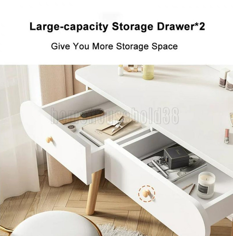 SURPRISE YOUR LOVE - With clean lines, an elegant white table surface, and large storage space, this makeup table is an ideal gift for mothers, girlfriends, daughters, or friends, who will certainly not hesitate to fill up their new dressing table.The dressing table can also be used as a writing or a laptop table.