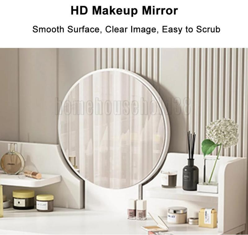 Vanity Makeup Dressing Table Round Mirror Jewelry Desk With 2 Drawers White