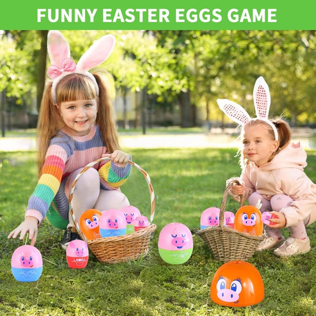 NESTED EASTER EGG TOYS: Includes 4 different sized piggies, just like four family members. The little piggy eggs can be nested into the big piggy eggs. Snap the bottom tabs in and the piggy eggs can be stacked one by one.
