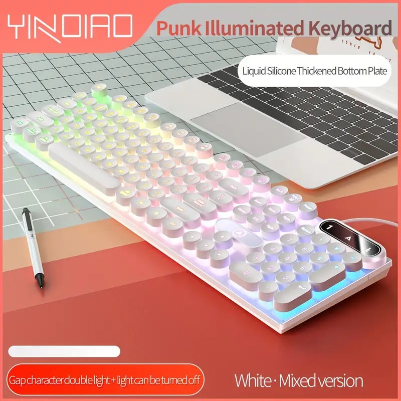 YinDiao Caller Mechanical Keyboard 104 Keys Green Axis Backlit Office E-sports Game Keyboard Wired USB Desktop Computer Notebook Universal